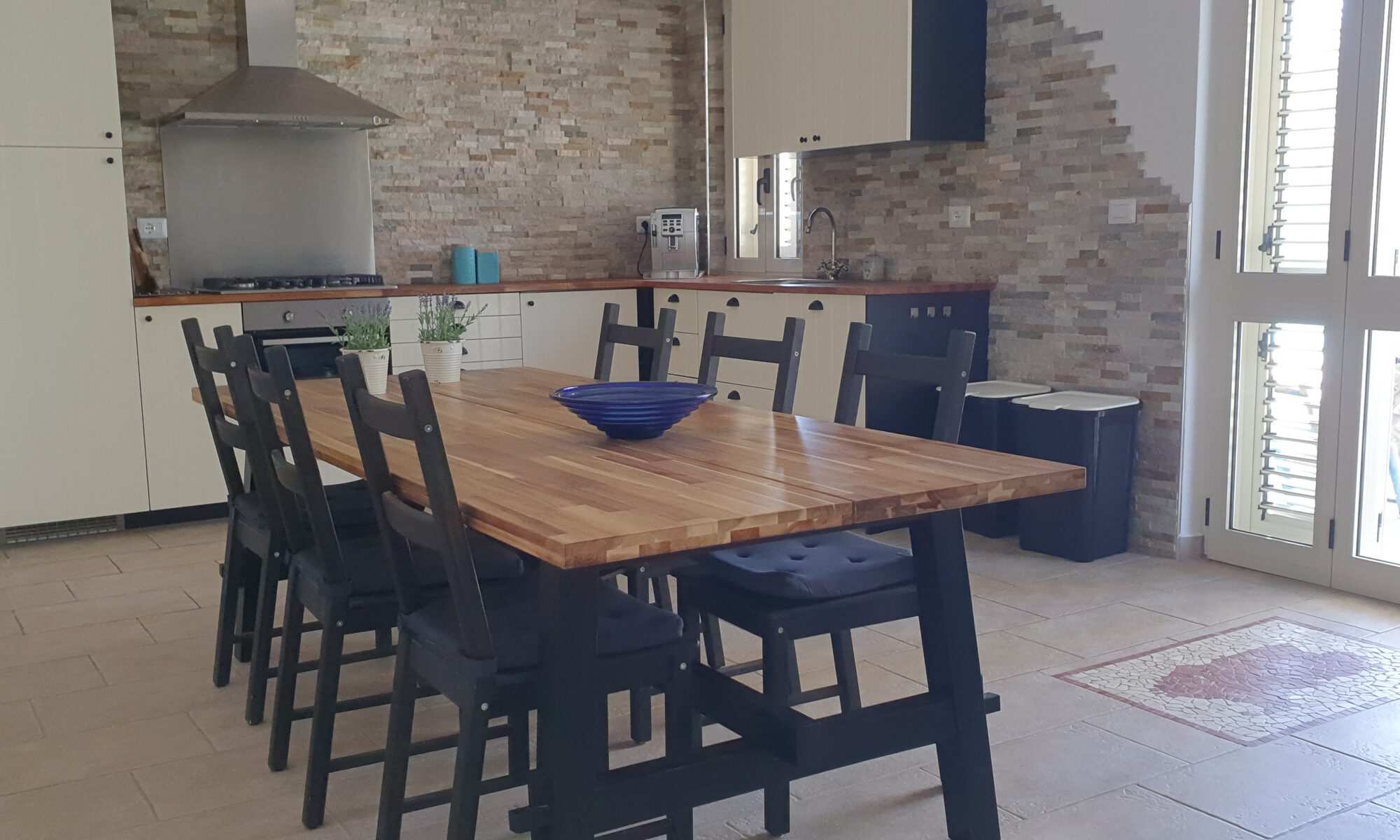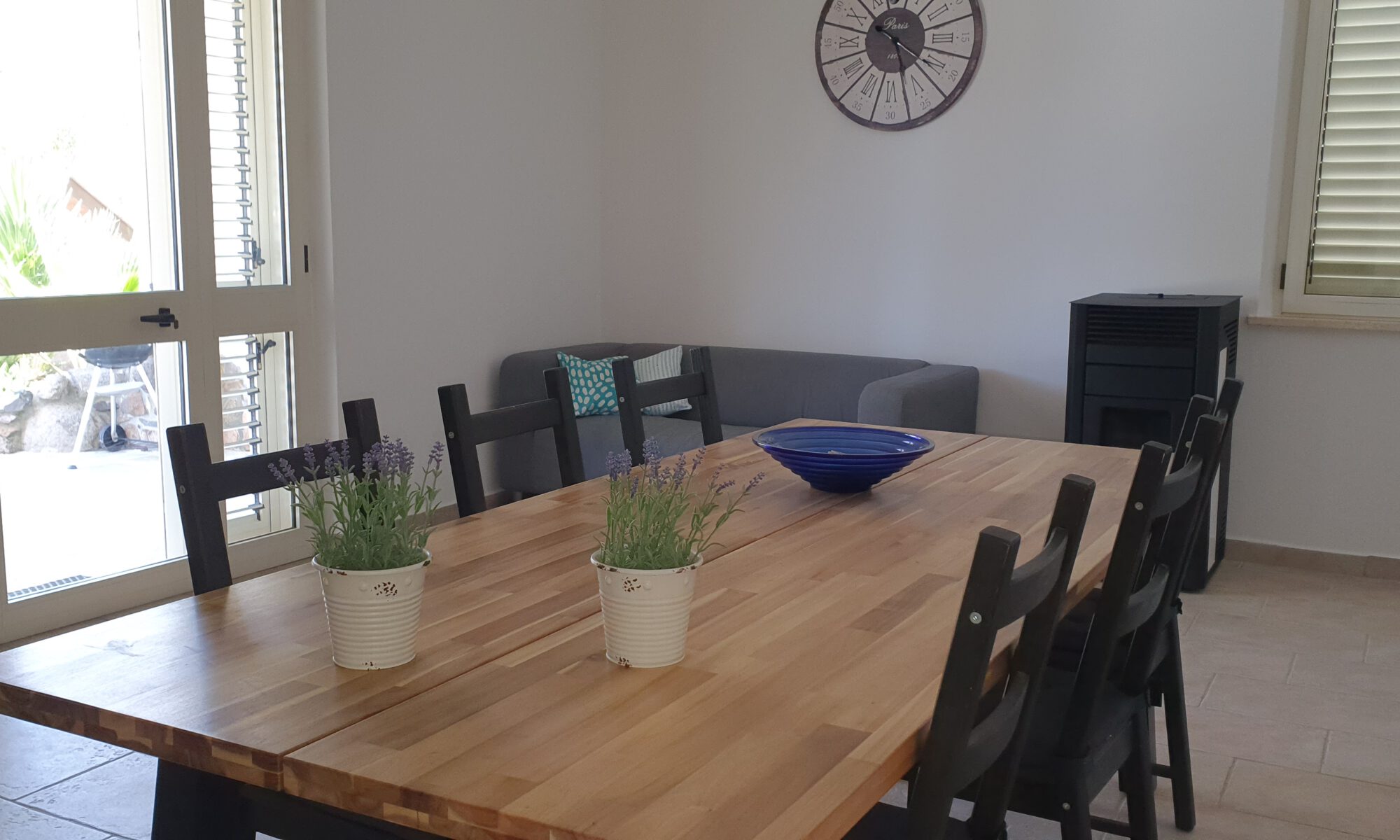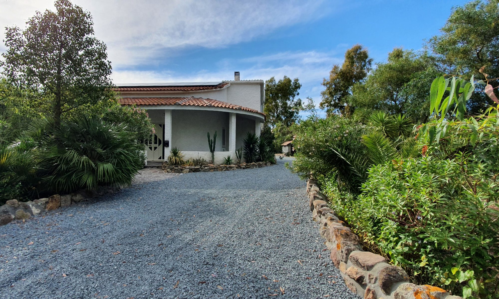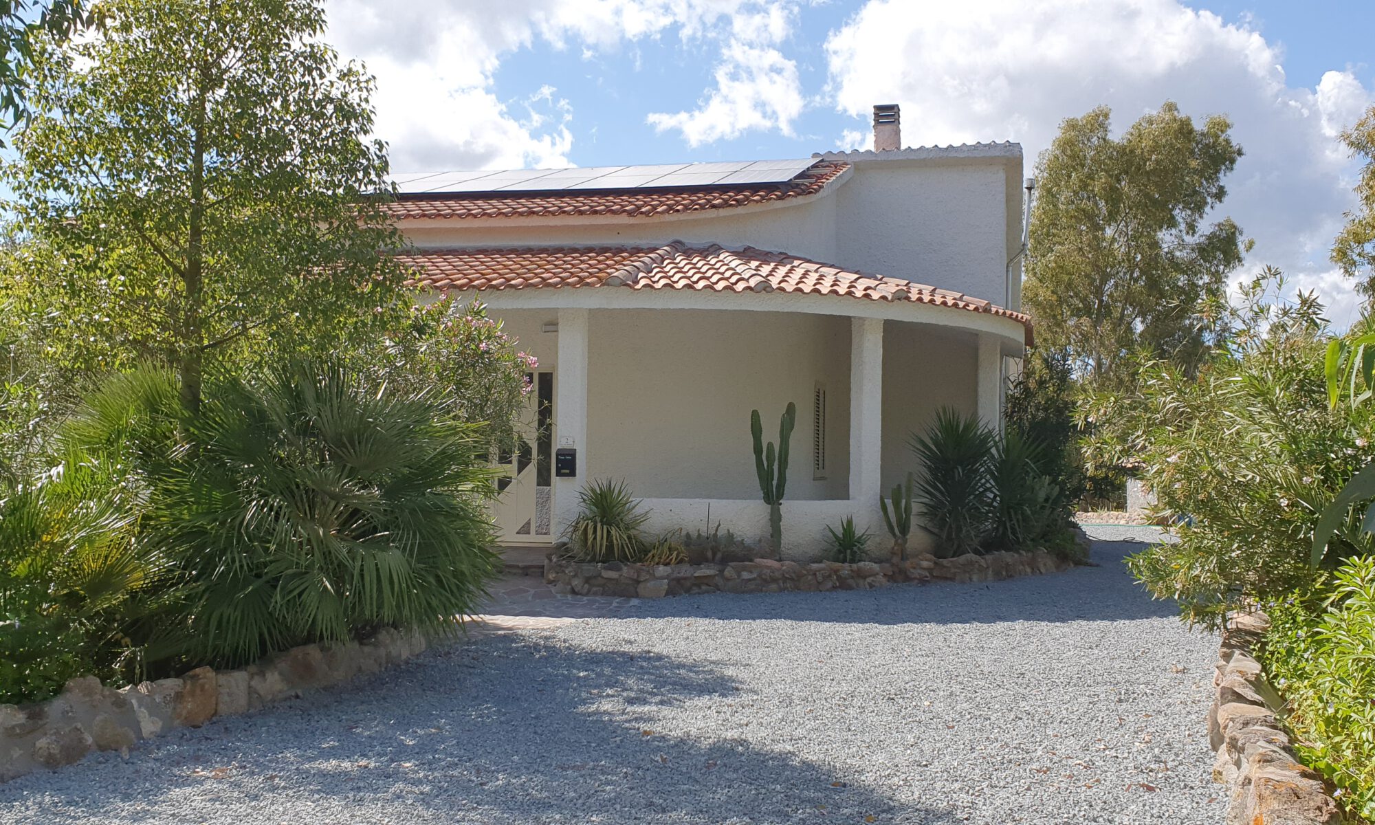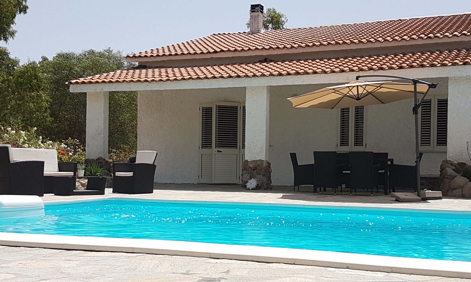 Onder de stenen veranda aan de achterzijde van het huis staat een eettafel met 6 stoelen. Overdag biedt de veranda u schaduw als het in de zon te warm wordt. Verder staan er op de veranda een lounge set, 6 ligbedden en 2 parasols. Ook kunt u gebruik maken van de barbecue en staat er een grote droogmolen.