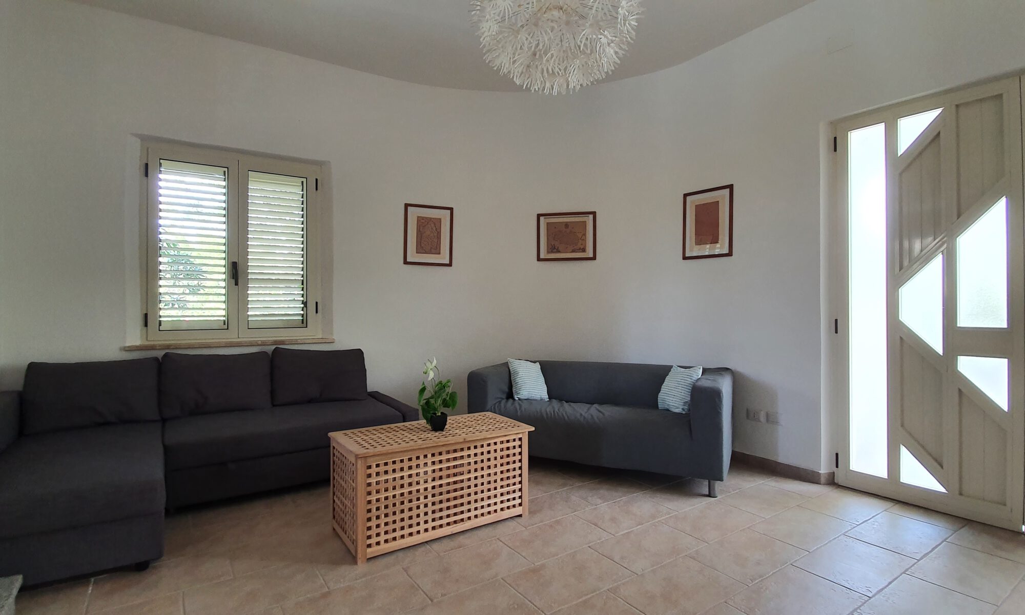 De woonkamer ligt verlaagd aan de keuken en is afgescheiden door een kleine trap. Er staan twee banken en een grote boekenkast. In de boekenkast vindt u gezelschapsspelletjes en boeken en tijdschriften in alle talen.