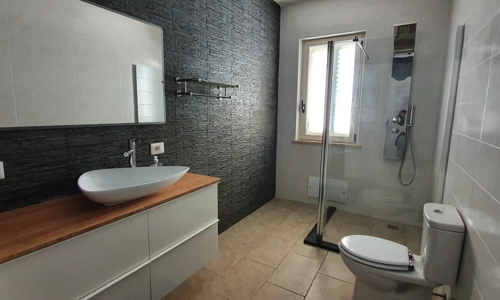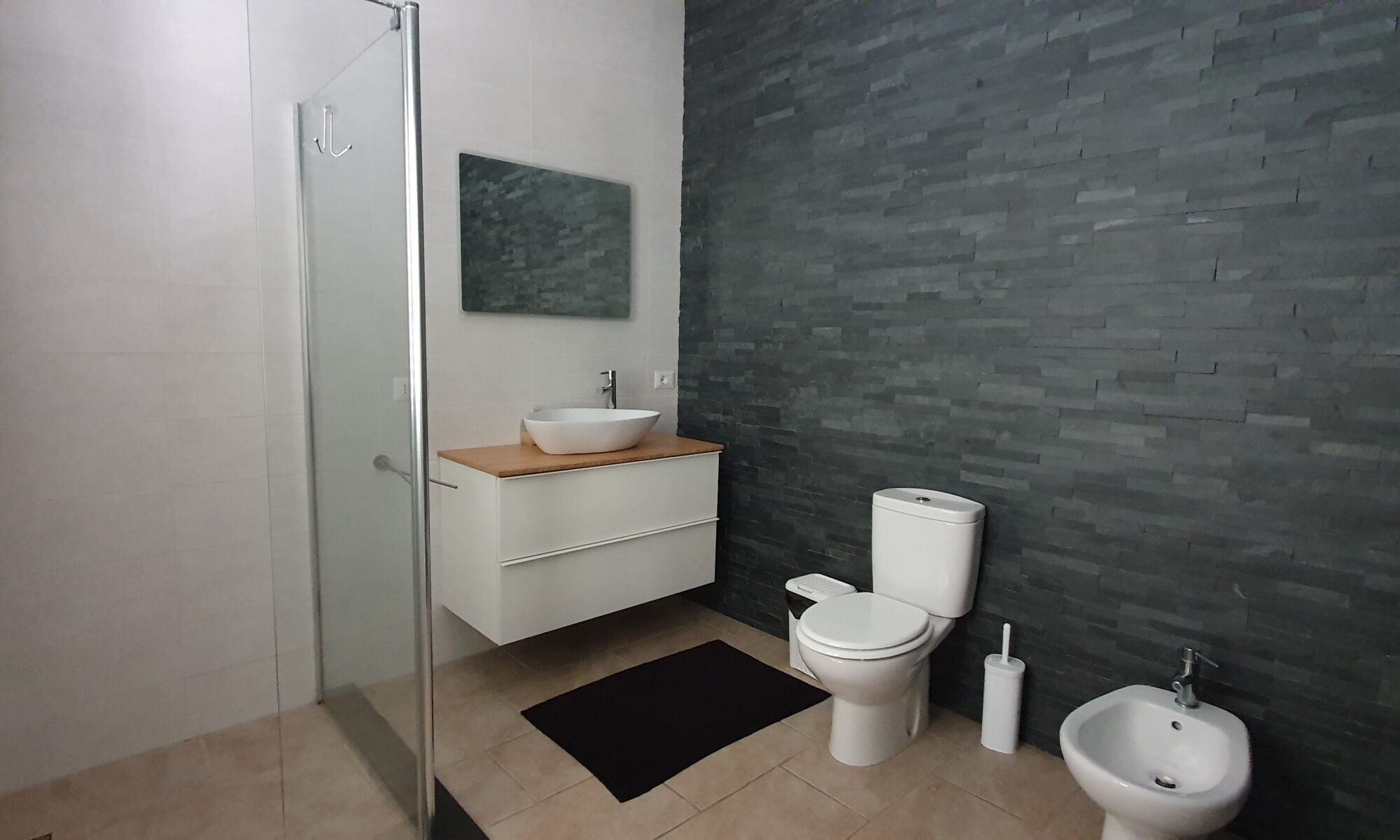 De villa heeft 2 badkamers. De eerste badkamer is ‘en-suite’ bij de masterbedroom. De tweede badkamer is vrij toegankelijk vanaf de hal. Beide badkamers zijn luxe afgewerkt en beschikken over de volgende faciliteiten: