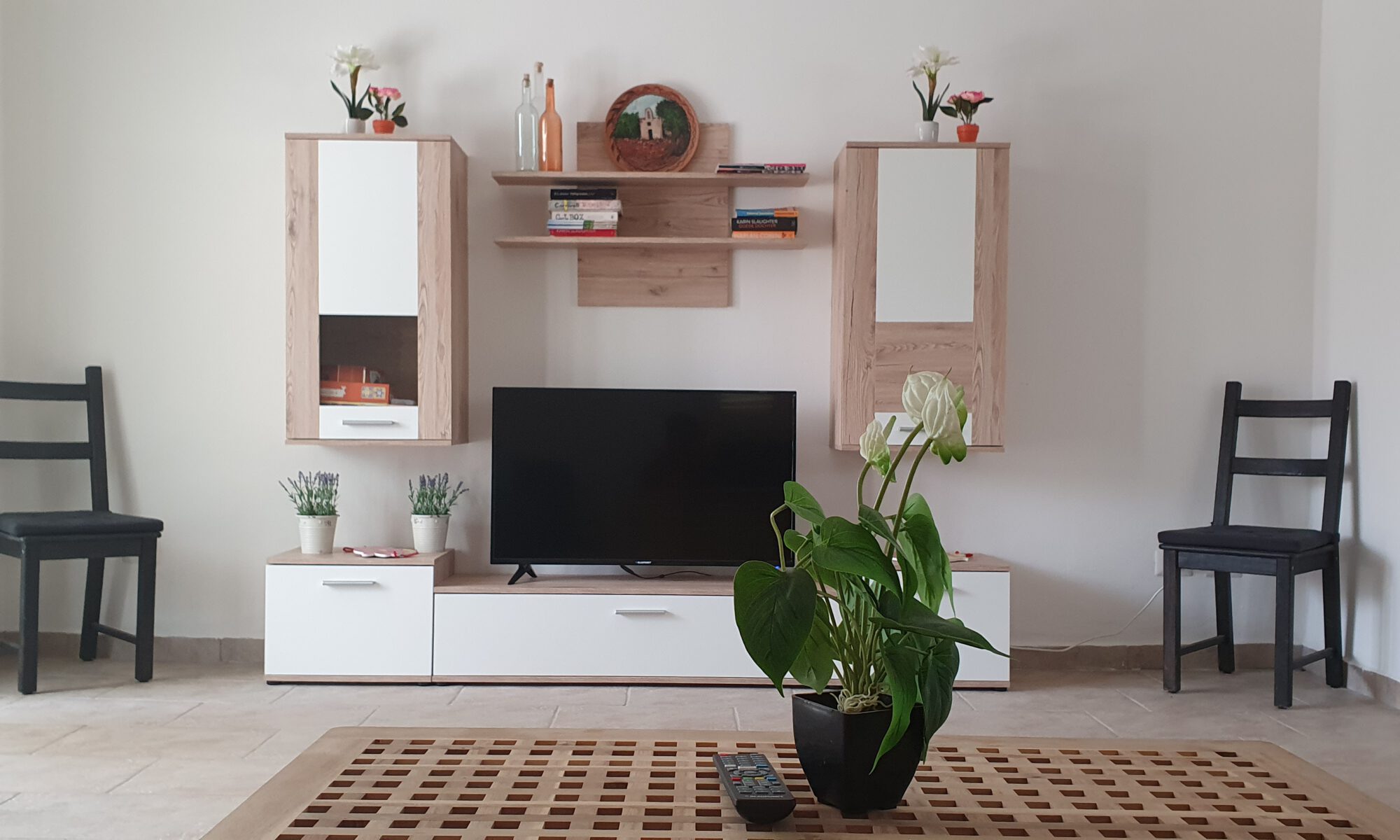 De woonkamer beschikt ook over een televisie met een Google Chromecast, waarmee u films en series kunt streamen vanaf uw mobiele telefoon.